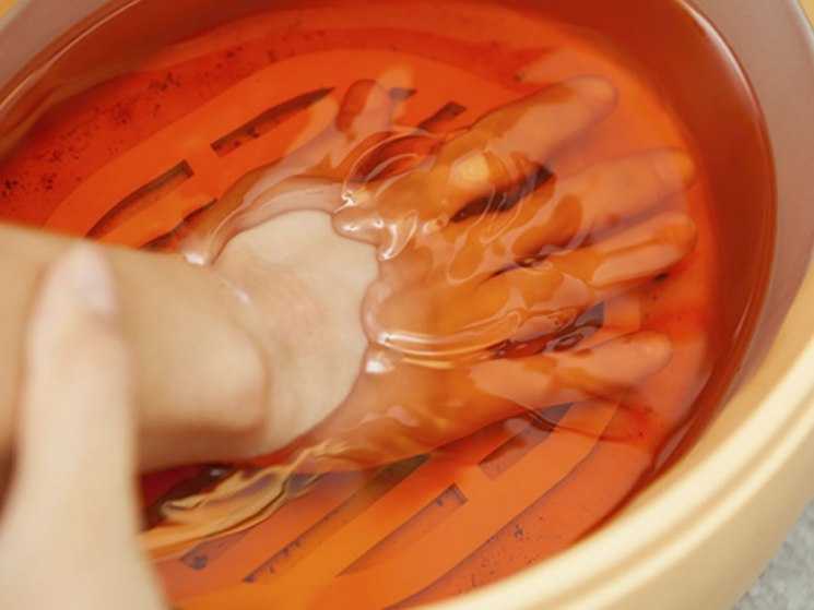 После этого нужно укрепить ногти. Для этого готовится ванночка с теплой водой, солью или йодом. Можно применять специальные средства. В воду опускают пальцы на 5 минут. За это время кутикула станет мягче. Раствор стимулирует утолщение пластин.