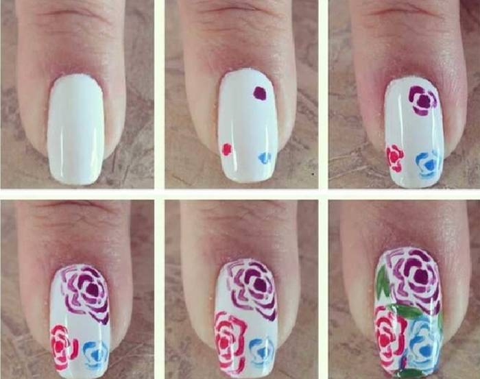 Такую большую розу вы сможете нарисовать на одном пальце. Если вы хотите сделать маленькие бутончики роз на каждом ноготке, то, возможно, вам понравится такой вариант: