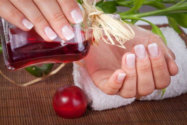После того, как придали ногтям нужную форму, опустите руки в заранее приготовленную теплую ванночку с морской солью, оливковым или эфирным маслом. Для отбеливания ногтевой пластины используйте лимонное масло. Такая ванночка размягчит кутикулу, морская соль укрепить ногти, а масло увлажнит кожу вокруг ногтей. Держите ногти в воде около 10 минут, после чего приступайте к удалению кутикулы, доставая пальчики по одному.