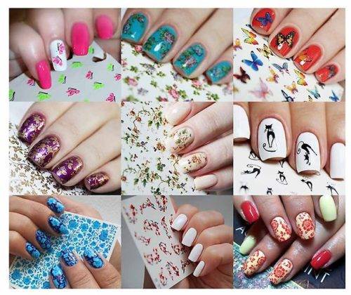 Современные варианты клеятся самостоятельно, без использования воды. Изображения не могут не радовать своим многообразием. Достаточно снять бумажную часть с одной стороны и присоединить ее к ногтевой пластине.