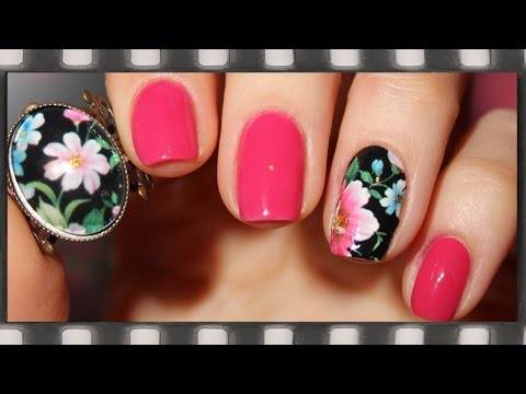 Быстрый малиновый маникюр с водными наклейками. Слайдер дизайн ногтей | Water Decals Nail Art