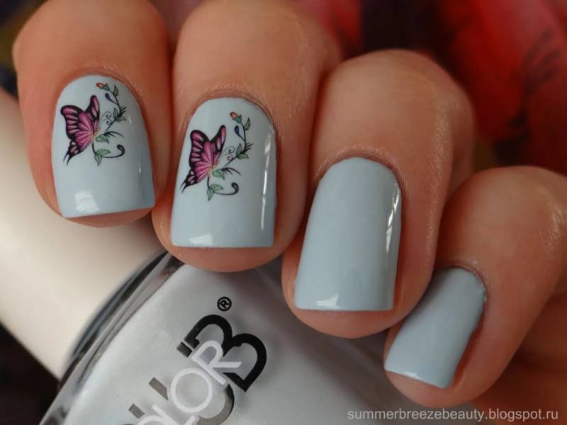 Водные наклейки помогают создать не менее эффектный маникюр, чем слайдеры на клейкой ленте. На светлом фоне они смотрятся более выигрышно, а благодаря прочности и легкости перемещения по поверхности ногтя, слайдер-дизайн с водными наклейками вошел в число популярных и любимых техник среди мастеров. Удобной в применении ультратонкой пленке отдают предпочтение еще и потому, что она способна держаться на ногтях до трех недель. Видео-урок ниже поможет вам научиться делать слайдер-дизайн, используя водные наклейки.