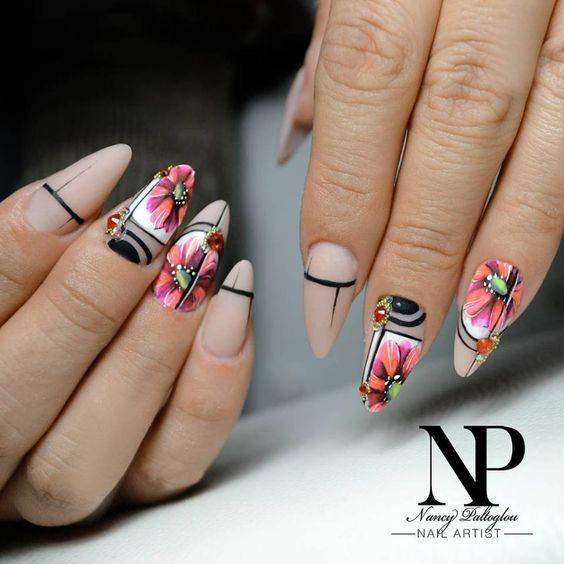 Овальные ногти отлично сочетаются с изящными и плавными дизайнами, такими как цветочные мотивы, волнистые линии или абстрактные рисунки.