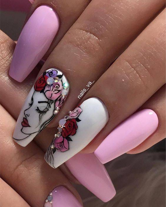 - Процедуру наращивания завершите нанесением готового рисунка, но здесь потребуется точность, поскольку двигать картинку на акриловом покрытии нельзя.