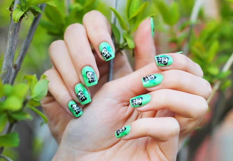 - Поместите рисунок на ноготь, оставьте до полного высыхания и покройте прозрачным лаком.