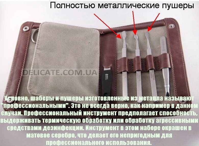 - Шабер или нож. Обрезает кутикулу после применения пушера.