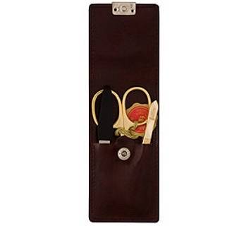 | 9749 RF | 4 | ножницы для ногтей, ножницы для кутикулы, пинцет, пилка | Чехол – красный матовый, в форме портмоне, крокодиловая кожа |