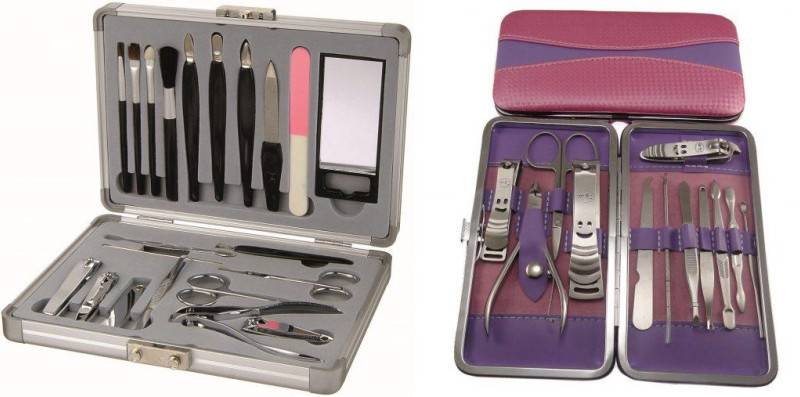 При выборе такого набора стоит обращать внимание на качество заточки, которая должная быть выполнена вручную, и на вид металла – медицинская сталь. Если в наборе есть элементы неудобные или нежелательные для маникюра, то лучше их заменить