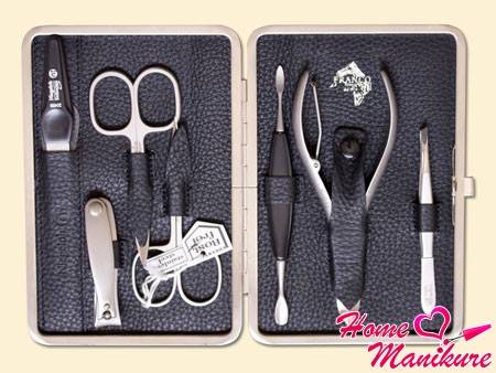 При выборе такого набора стоит обращать внимание на качество заточки, которая должная быть выполнена вручную, и на вид металла – медицинская сталь. Если в наборе есть элементы неудобные или нежелательные для маникюра, то лучше их заменить
