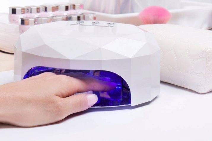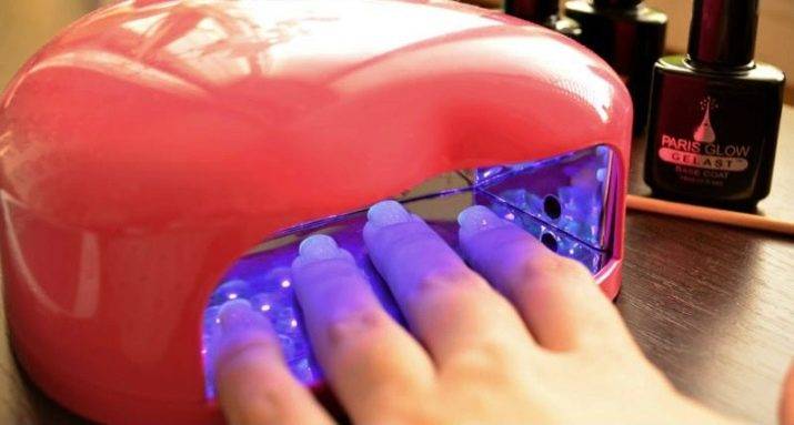 - просушка под лампой продлевает срок службы маникюра, но держать ногти под лампой необходимо дольше, чем это делается с простым покрытием;