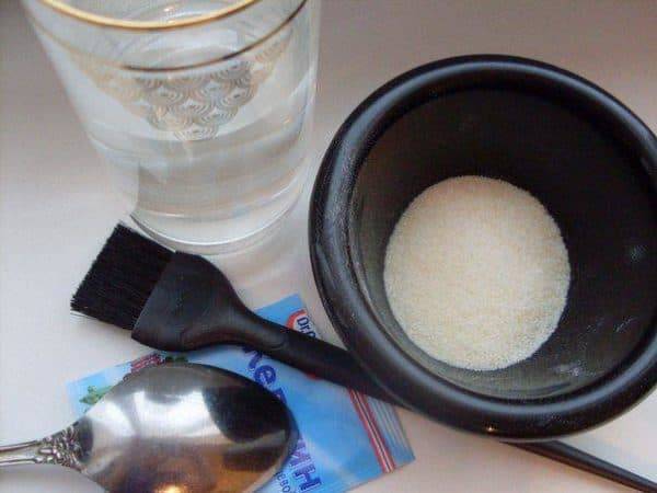 Для волос средней длины понадобится одна пачка желатина. Его необходимо растворить в теплой кипяченой воде и оставить до набухания.