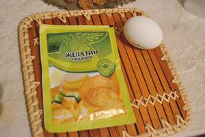 Элементарный рецепт, в котором 1 столовую ложку желатина следует залить водой — 3 столовые ложки и дать смеси настояться 15-20 минут. Для того, чтобы желатин лучше растворился и набух, некоторые рекомендуют нагревать смесь на водяной бане, но ни в коем случае не доводить до кипения.