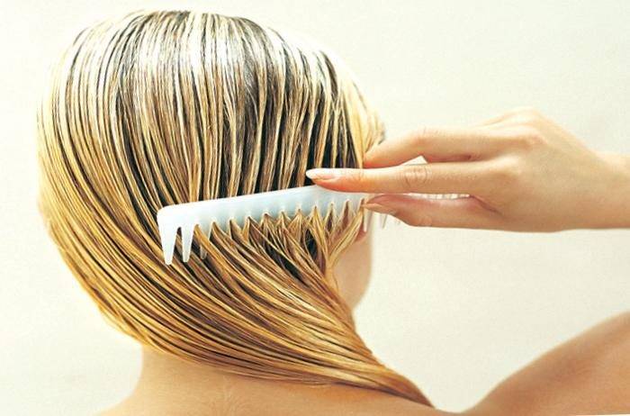 - Распределить маску по всей массе прядей. Прочесать редким гребешком.