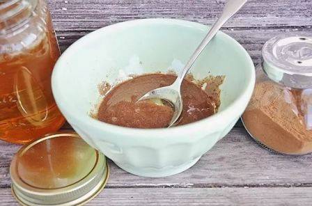 Смешиваем коричный порошок (8 гр.) с растопленным медом (32 мл). Тщательно вымешайте смесь и наложите на лицо. Время одного сеанса четверть часа. А всего для достижения максимального эффекта вам нужен месячный курс корично-медовых масок.