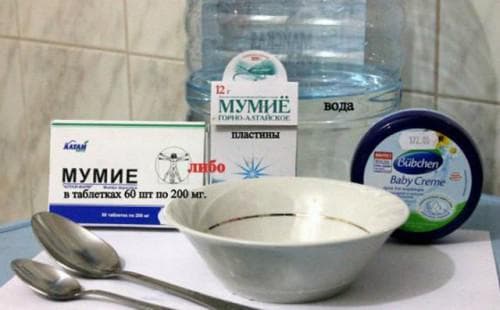- две таблетки аптечного мумие или три грамма в виде смолы: