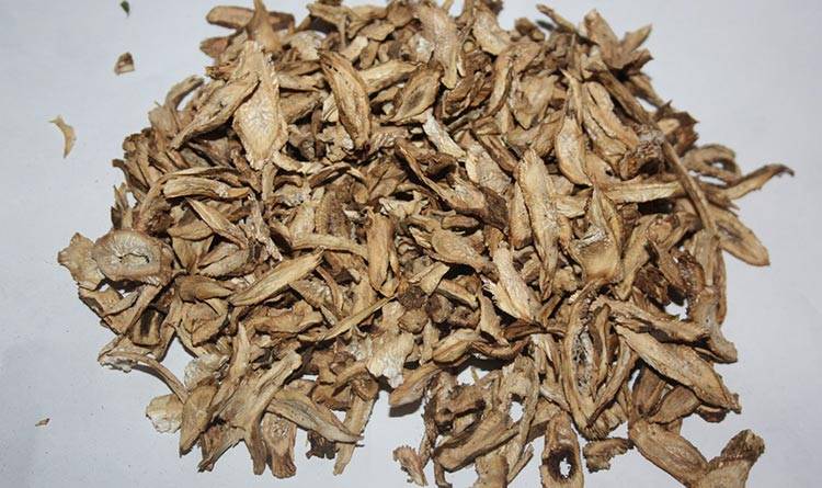 После того как корни выкопаны, их необходимо очистить от земли, срезать надземную часть растения, промыть водой, очистить от кожицы и разрезать на небольшие кусочки. Очень толстые коряжки можно разрезать вдоль на две-три части. Затем подготовленные корни нужно тщательно просушить на свежем воздухе, разложив их тонким слоем. Если же применять специальные сушки, то температура должна достигать 50 градусов по Цельсию. Заготовленное сырье может храниться до 5 лет и имеет сладковатый привкус.