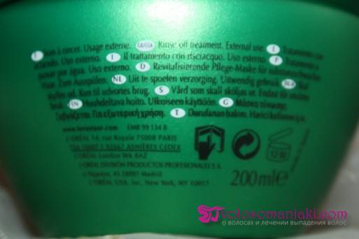 Маска идет объемом 200 и 500 мл., произведена в Испании. Маска находится в красивой, изящной, лаконичной баночке, в принципе как и все средства Kerastase, но жутко неудобной, она постоянно ускользает из рук, конечно она выделяется на фоне всех остальных масок в ванной комнате, но все же я больше люблю тубы из которых можно выдавить нужное количество маски. По консистенции маска гелевая, очень легко распределяется по волосам, после нанесения на волосы, маска сразу впитывается за считанные секунды, запах у маски свежий приятный.