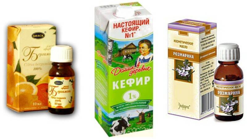 Состав: кефир (половина стакана), эфирные масла цитрусовых, розмарина и бергамота (по три капли).