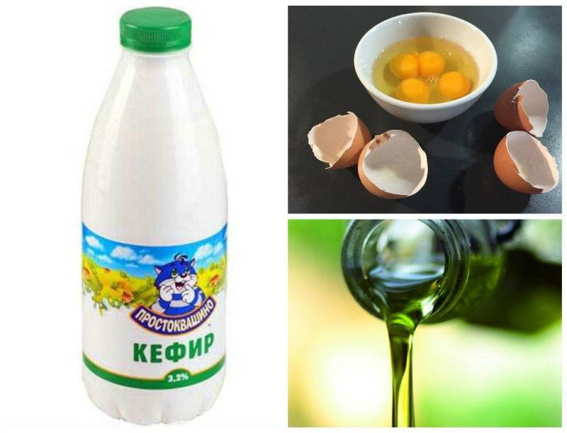 Состав: половина стакана кефира, желток (1 штука), оливковое масло (2-3 столовые ложки).
