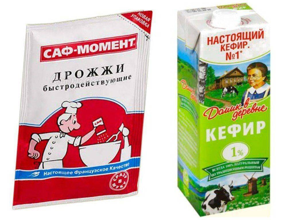 Состав: сухие дрожжи (1 столовая ложка), стакан кефира.