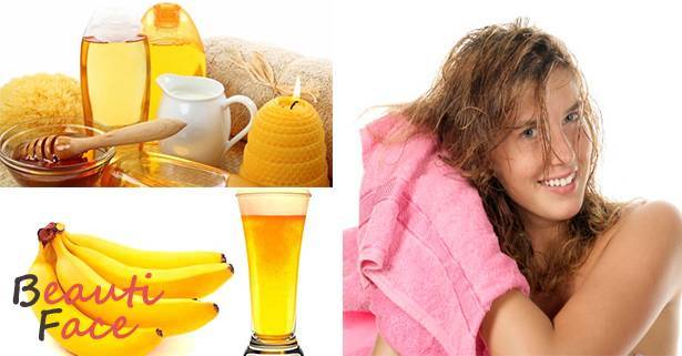 - процедуры для волос наиболее полезны с применением масок из меда и пива, когда после нанесения средства голову утепляют (например, целлофановым пакетом) и укутывают полотенцем.