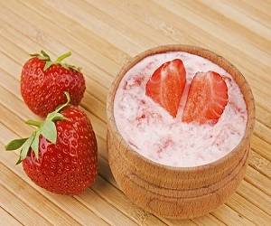 В керамической посуде соединяют ½ стакана клубничного пюре, 2 ст. л. белой глины, 1 ст. л. натурального меда, 1 белок (если кожа жирная) или 1 желток (если кожа нормальная или сухая), 5 мл сока лимона свежевыжатого.