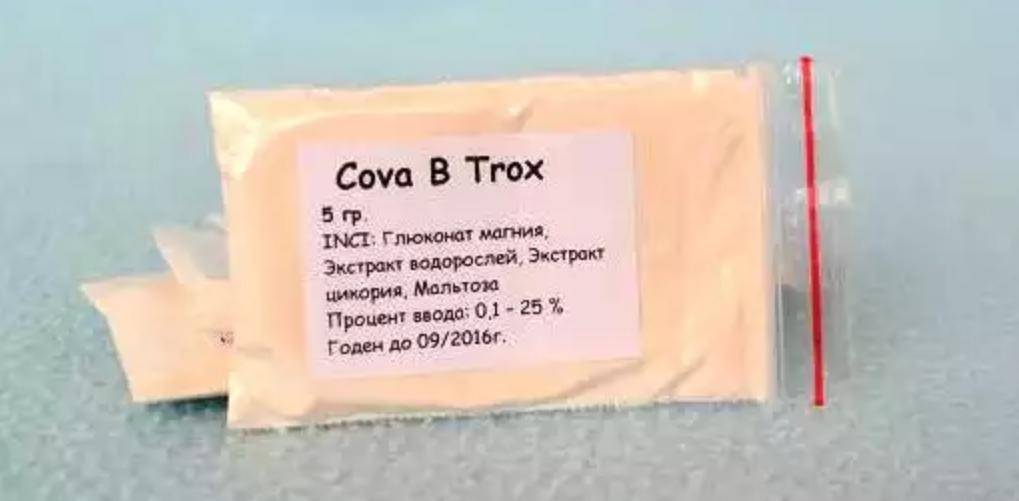 Также понадобится COVA B TROX, Ботокс-лайк — смесь натуральных компонентов в виде сухого порошка, альтернатива ботоксным инъекциям. Используется для борьбы с мимическими морщинами в местах постоянных и привычных заломов.