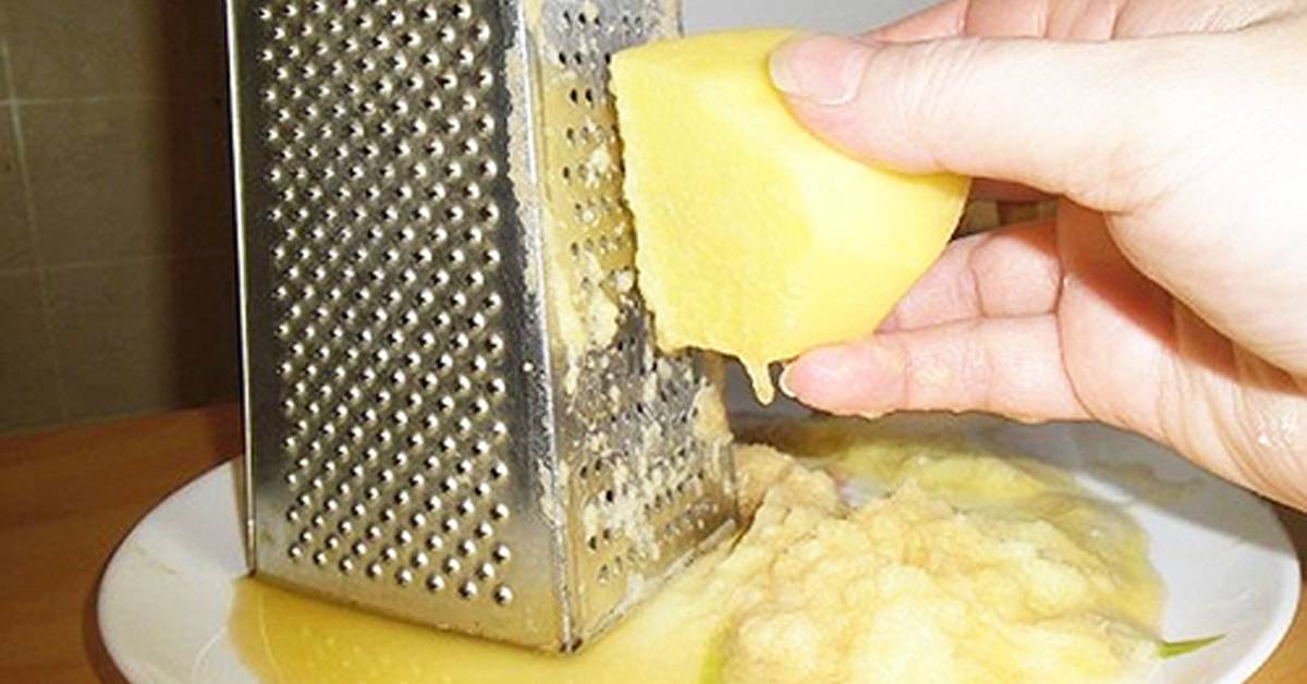 Очищенные клубни картофеля необходимо натереть на терке. При этом чем мельче получится стружка, тем лучше.