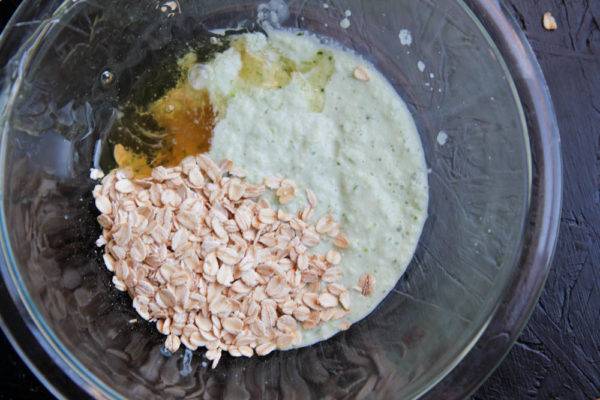 - Добавляйте в смесь овсяную муку (или измельченные до состояния муки хлопья) до тех пор, пока масса не станет достаточно вязкой и густой.