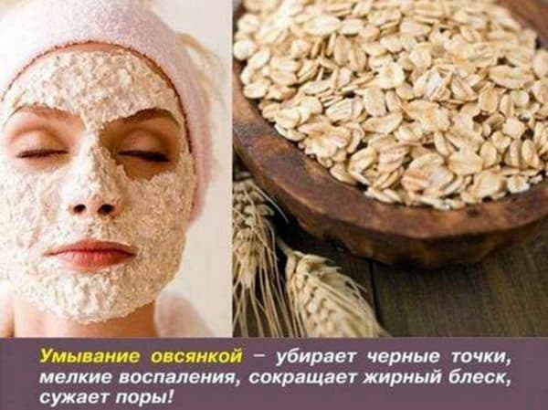 Овсянку измельчают кофемолкой до порошкообразного состояния, просеивают, заливают одной чайной ложкой кипятка и оставляют на две минуты до распаривания смеси. После чего добавляют пять грамм масла жожоба и пять грамм любого другого масла. Полученной смесью смазывают кожные покровы лица при помощи массажных движений, что способствует активизации кровообращения и устранению отмерших клеток кожи.