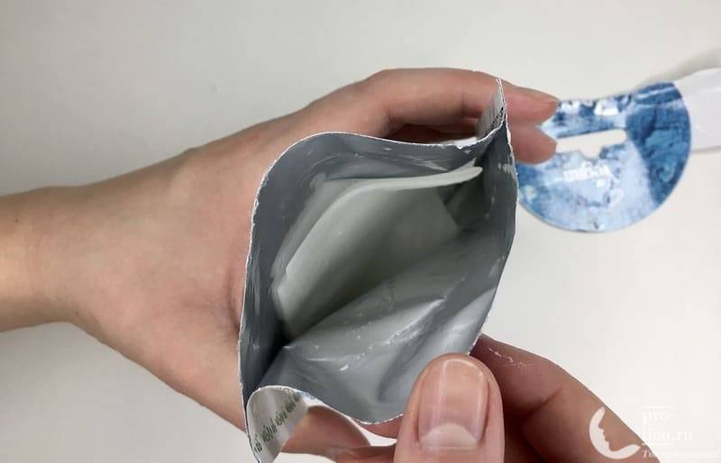 На упаковке сверху расположена линия надрыва. По ней маска отлично открывается руками без ножниц – достаточно потянуть за край в сторону и полностью оторвать.