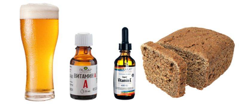 Рецепт приготовления: хлебные ломтики покрошить в керамическую миску. В эмалированной посуде слегка подогреть пиво и залить им хлеб. Когда он размякнет, с помощью вилки размять его в однородную массу. Влить в кашицу витаминные масла и перемешать. Смесью вначале густо промазать корни, легонько массируя кожу. Затем распределить остатки на локоны. Оставить на 45 минут. Смыть очень тщательно, чтобы на волосах ничего не осталось.
