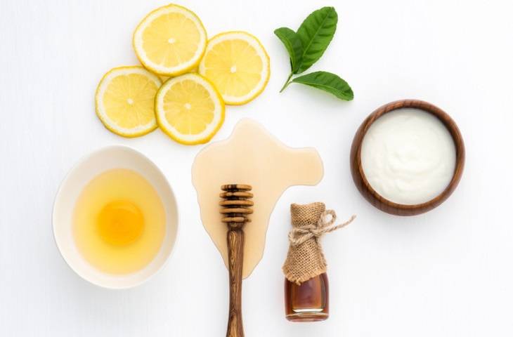 - Смешать большую ложку меда, репейного или оливкового масла и яичный желток и влить в смесь лимонный сок.
