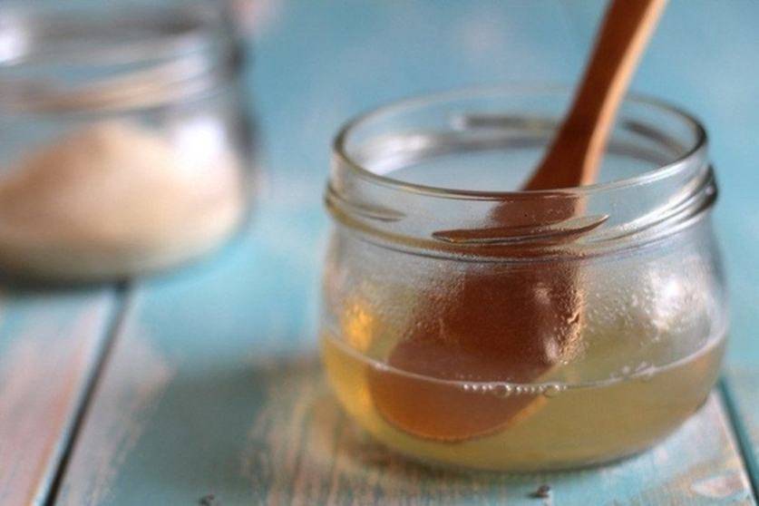 В приготовленный по инструкции желатиновый раствор добавить сок лимона из половинки фрукта, ложку мёда, немного шампуня, перемешать. Нанести на волосы, выждать полчаса, смыть.