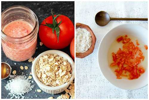 Мякоть помидора смешать с 1 ч. ложкой сока лимона, йогурта, пивных дрожжей и овсяных хлопьев. Процедура рассчитана на 10 минут.