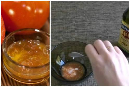 Мякоть помидора перемешать с крахмалом (до густоты сметаны), добавить 5 капель растительного масла. Продолжительность 20 минут.
