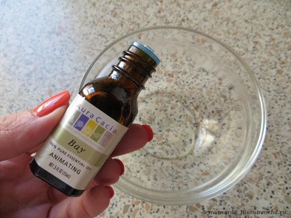Придать шевелюре жизненной силы и блеска можно при помощи ополаскивателя, приготовленного в домашних условиях. Необходимо взять 2 л теплой воды и добавить туда 20 капель масла бей. Размешать и применять после мытья головы шампунем.