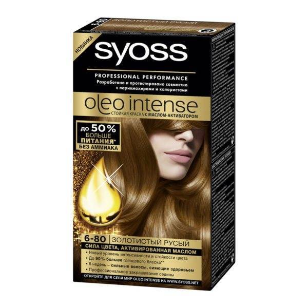 - Syoss Oleo Intense. Тот самый случай, когда известный бренд вовремя рассмотрел потенциал масляных красок. В составе этого продукта нет аммиака, зато нашлось место для кератина. Средство прекрасно закрашивает седину, а полученный цвет удается удерживать на локонах до пяти недель без потери насыщенности. Палитра красок для волос Сьес удовлетворит даже очень требовательных леди.