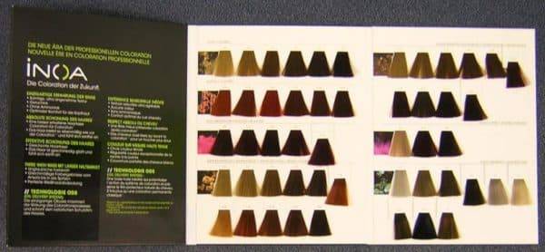 - INOA от L’Oreal. Один из самых известных косметических брендов также признается в любви масляным средствам. Продукт «Иноа» не содержит аммиак, наносить ее легко, смывать тоже нетрудно. Преимуществом становится и палитра, включающая в себя три десятка разнообразных оттенков.