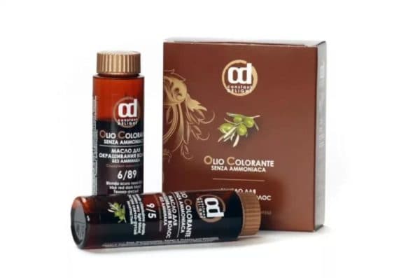 - Constant Delight (Констант Делайт, Od). В палитре этого известного бренда 40 цветов, а состав масляных красок отличается натуральностью. Так, одним из главных компонентов становится оливковое масло, а за счет окрашивающих пигментов можно изменить цвет локонов на 2-3 тона. Краска имеет густую консистенцию, поэтому ее легко наносить, а полученный эффект удерживается на локонах даже после двадцатой помывки головы.