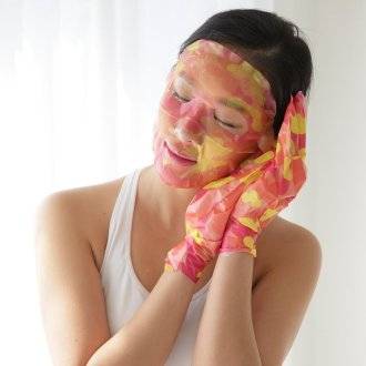 В смесь вводят по 2 капли мятного, сандалового и апельсинового масла. Пропитывают средством тканевую основу с прорезями, прикладывают к лицу на 30 минут.