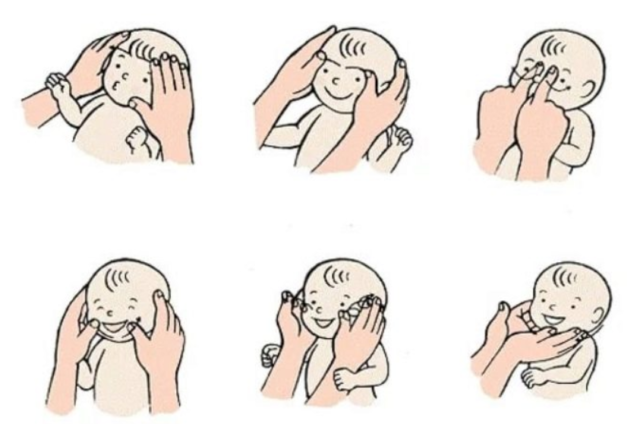 - Самомассаж, в ходе которого малыш сам себе массажирует мускулатуру лица.