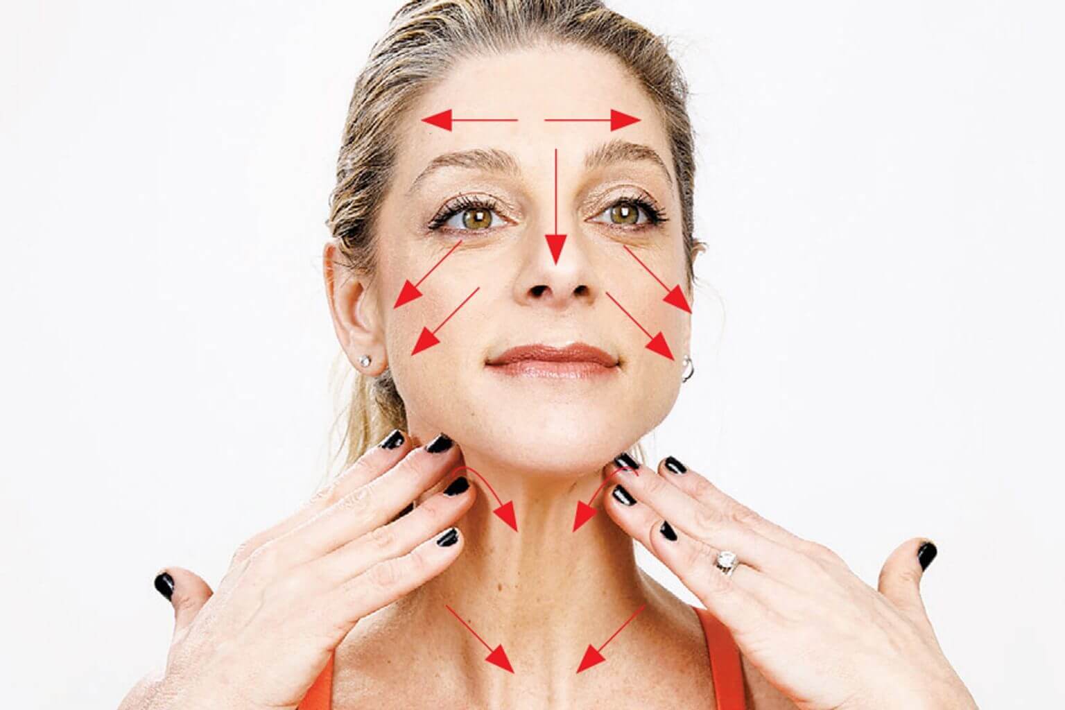 Чтобы получить пользу от массажа лица вне зависимости от выбранной техники, массажные движения проводят по следующим линиям:
