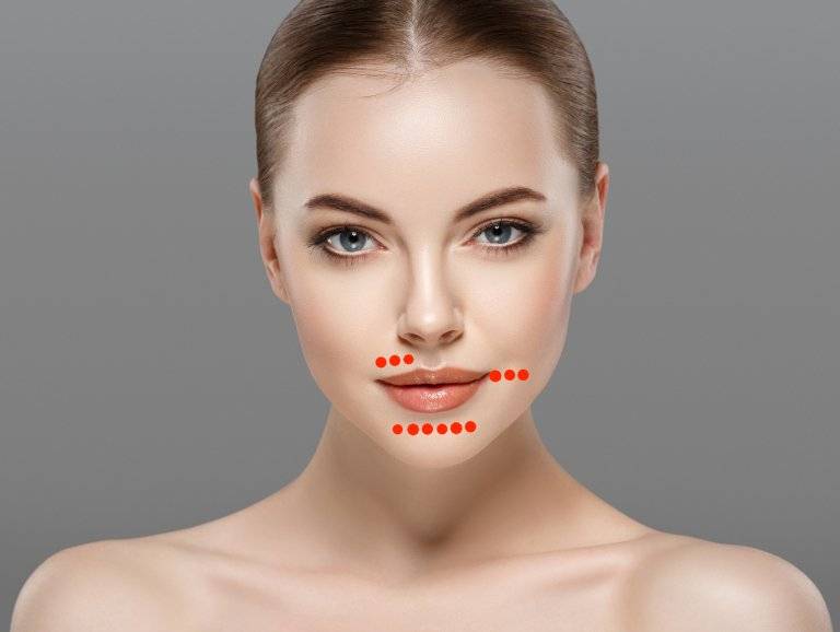 - Затем нужно приступить к точке, расположенной прямо над губами.