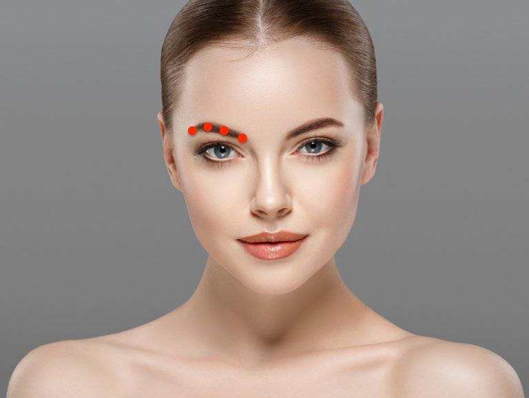 Продавите таким образом четыре точки на линии бровей, всегда с акцентом на средний палец.