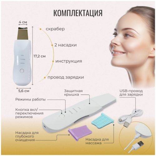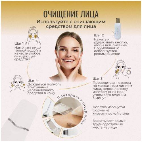 Массажер для лица разработан, чтобы очищать кожу, подтягивать, устранять дефекты. Кроме ультразвука используется пилинг, вибрация, микротоки. С помощью ионизации достигают омоложения, регенерации клеток, улучшения метаболизма. Аппарат качественно проводит процедуры, заменяя поход к косметологу. Лёгкая и эргономичная модель предназначена для ежедневного применения. Она работает от аккумулятора, одного заряда хватает на час. Это универсальный вариант для разных типов кожи.