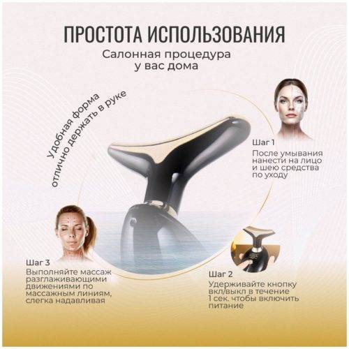 Данный массажер сочетает в себе три эффективные методики: электростимуляцию, микротоковую терапию и пластический 3D массаж. Он незаменим для лифтинга, коррекции второго подбородка, разглаживания морщин и повышения тонуса. Большой плюс прибора в том, что использовать его можно и для коррекции проблемных зон тела. Рекомендованная продолжительность сеанса 20 минут.