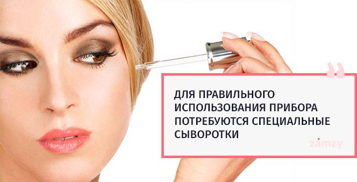 Аппарат применяют только на хорошо очищенной коже, на которую предварительно был нанесен специальный гель на водной основе. Для усиления эффекта от процедуры дополнительно рекомендуется использовать косметические сыворотки. Лицо прорабатывается прибором вдоль массажных линий. От центральной части медленно двигаются к вискам.