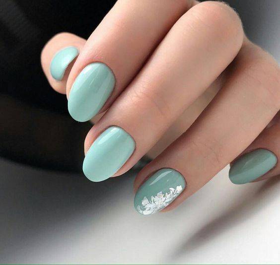 Для тех, кто подчиняется правилам дресс-кода или просто не любит яркие и броские дизайны, представленный вариант мятного маникюра, выполненный в одном тоне, станет отличным решением. При его помощи ногти смотрятся роскошно и элегантно, так как лак представленного оттенка не требует никаких дополнительных украшений. Нейл-арт пастельных цветов всегда имеет женственный и чувственный вид.