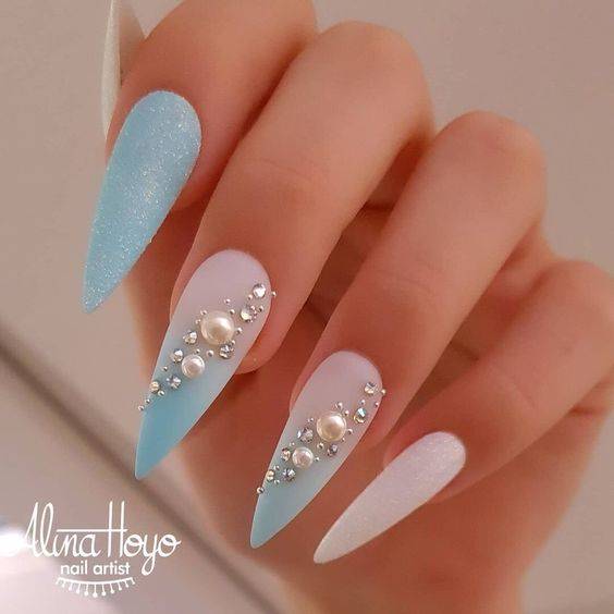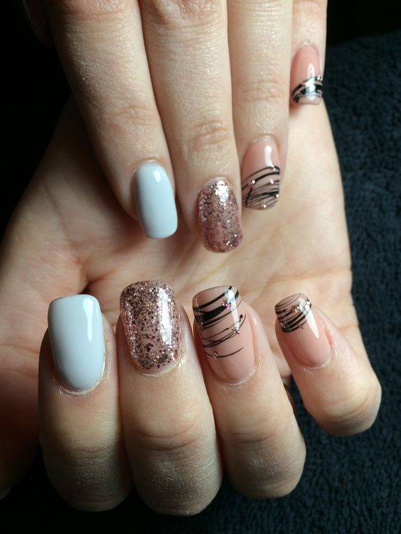 В этом сезоне в тренде эксперименты с блеском и перламутром. Для создания такого маникюра используют стразы, пайетки, звездную пыль. Не советуют наносить много блесток – можно получить слишком неаккуратный дизайн.